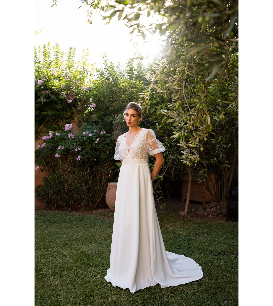 Inspired by our best-selling Anouck gown, the Nour wedding dress embodies the very essence of femininity and French artisanal craftsmanship.