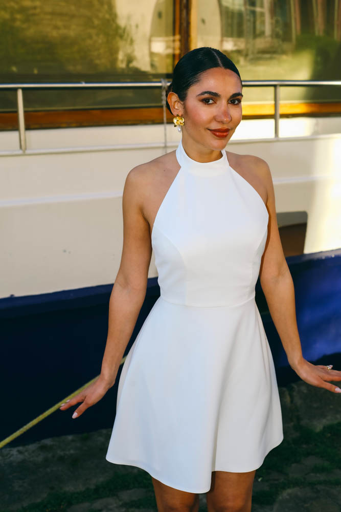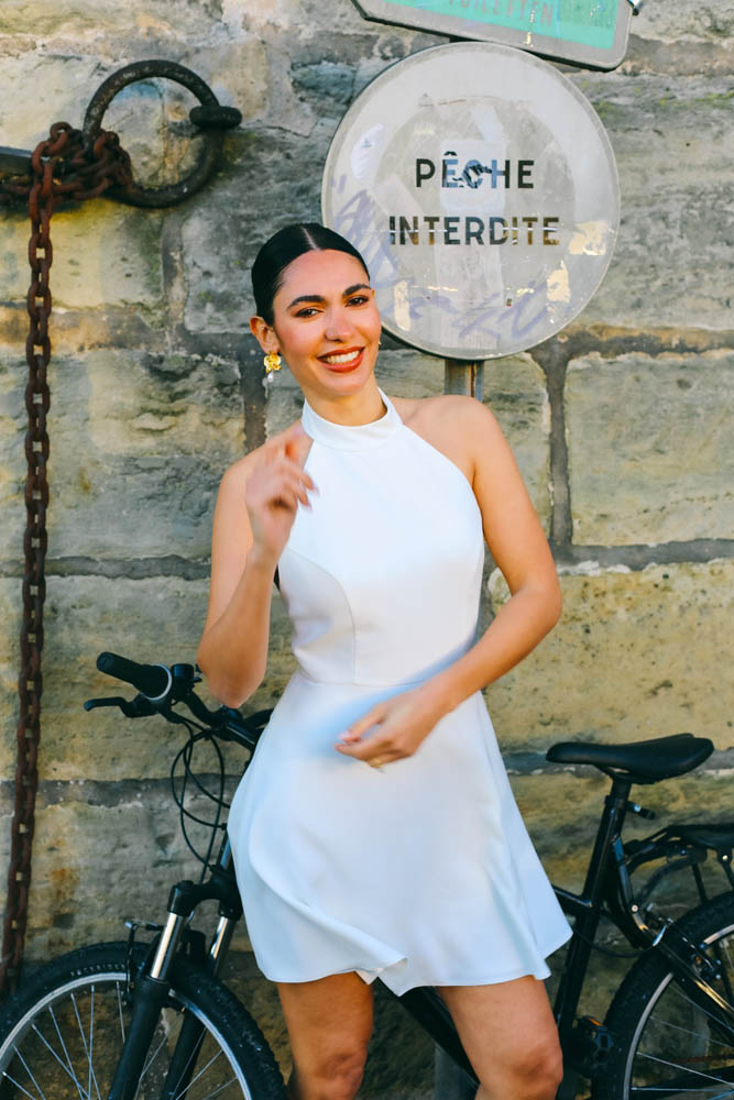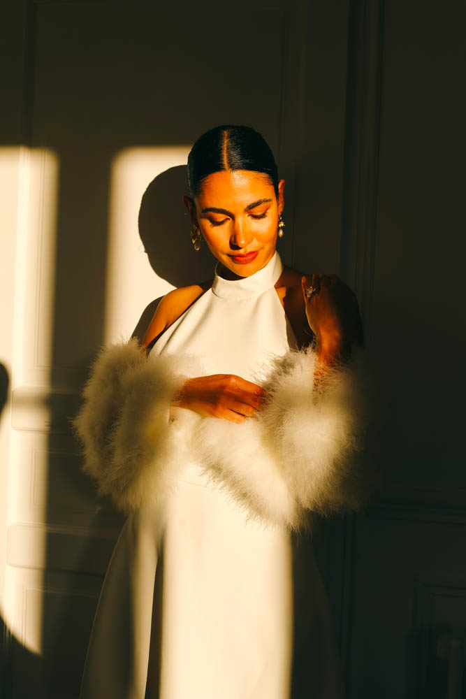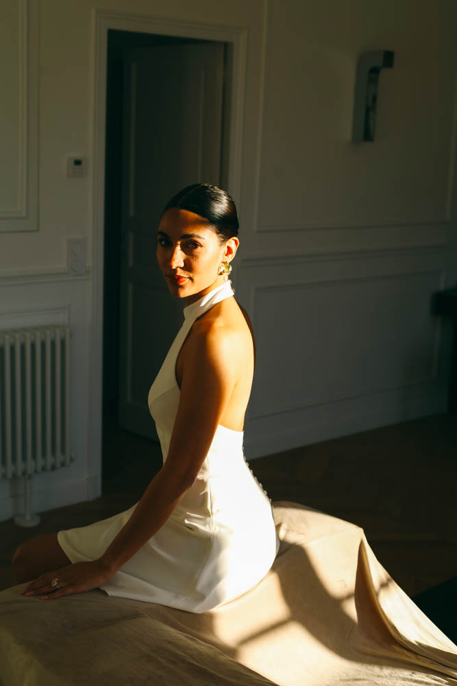 La robe Bianca incarne une vision contemporaine de la mariée civile : épurée, affirmée et résolument élégante.