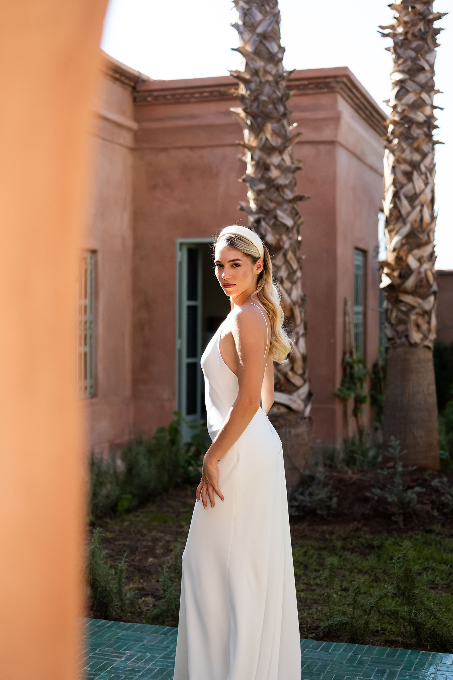 Réédition. Robe de mariée qui allie modernité et d’élégance, la robe Plage incarne à merveille l’esprit bohème de la collection intemporelle.