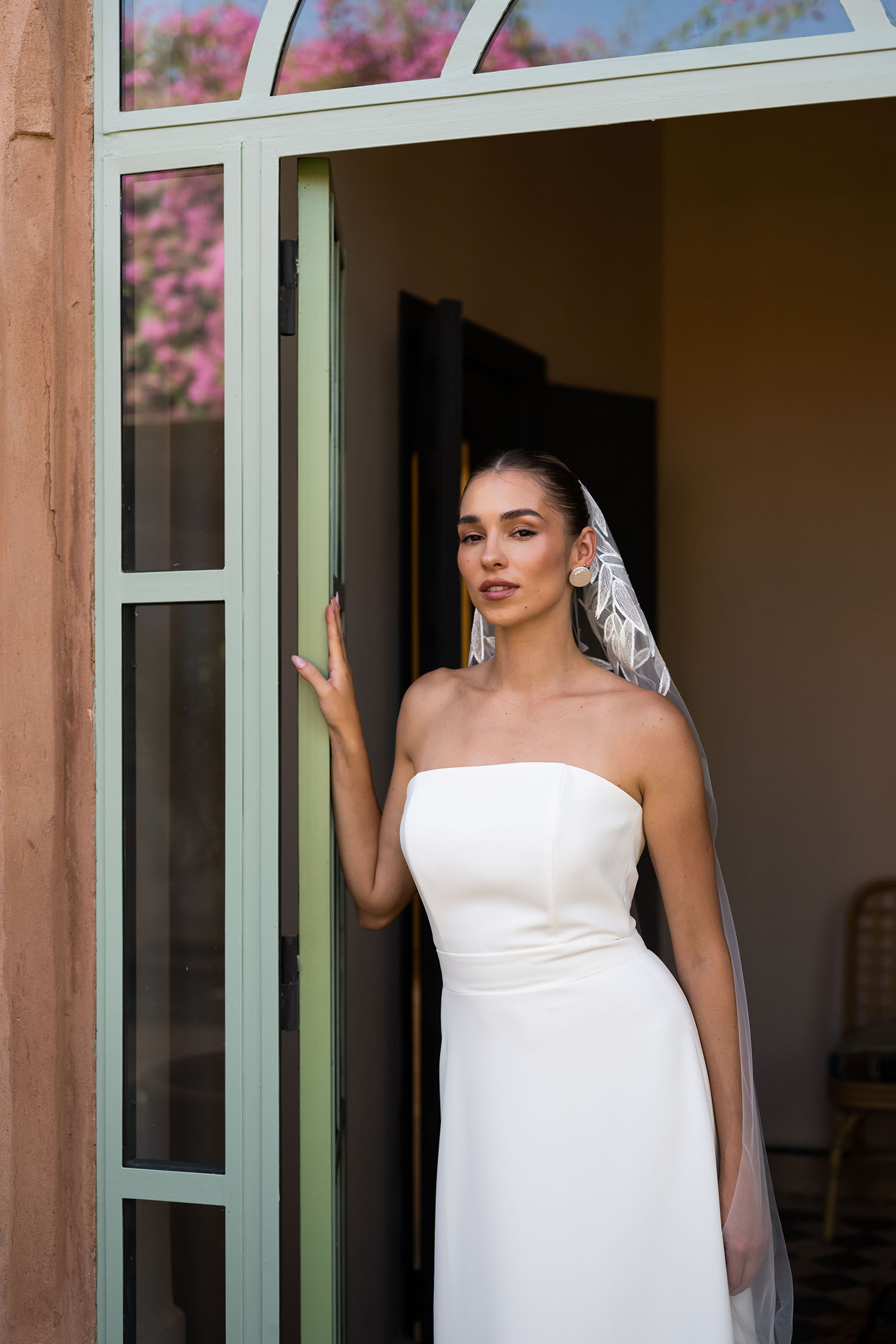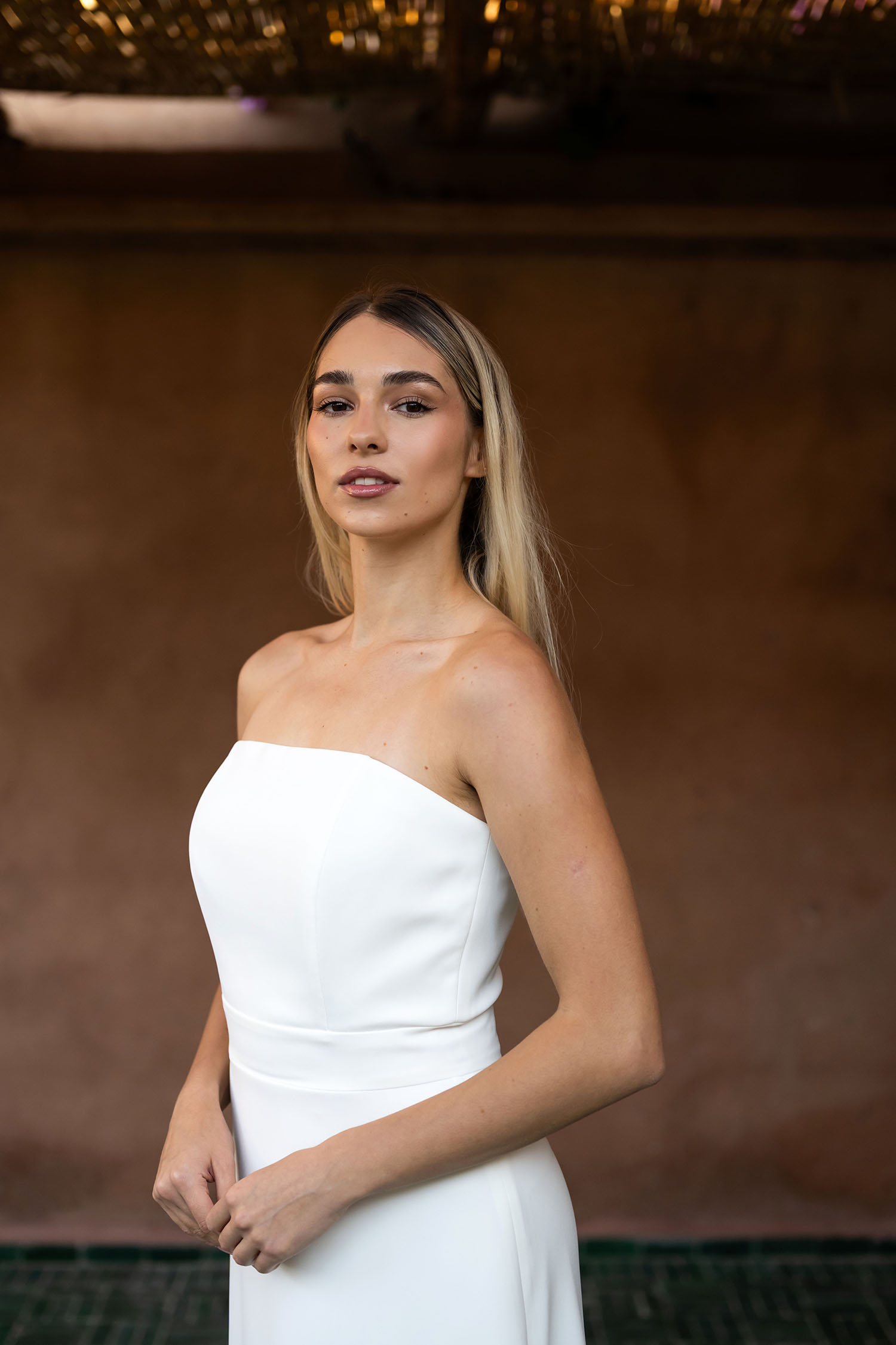 Robe de mariée bustier à l’allure vintage et soignée.
