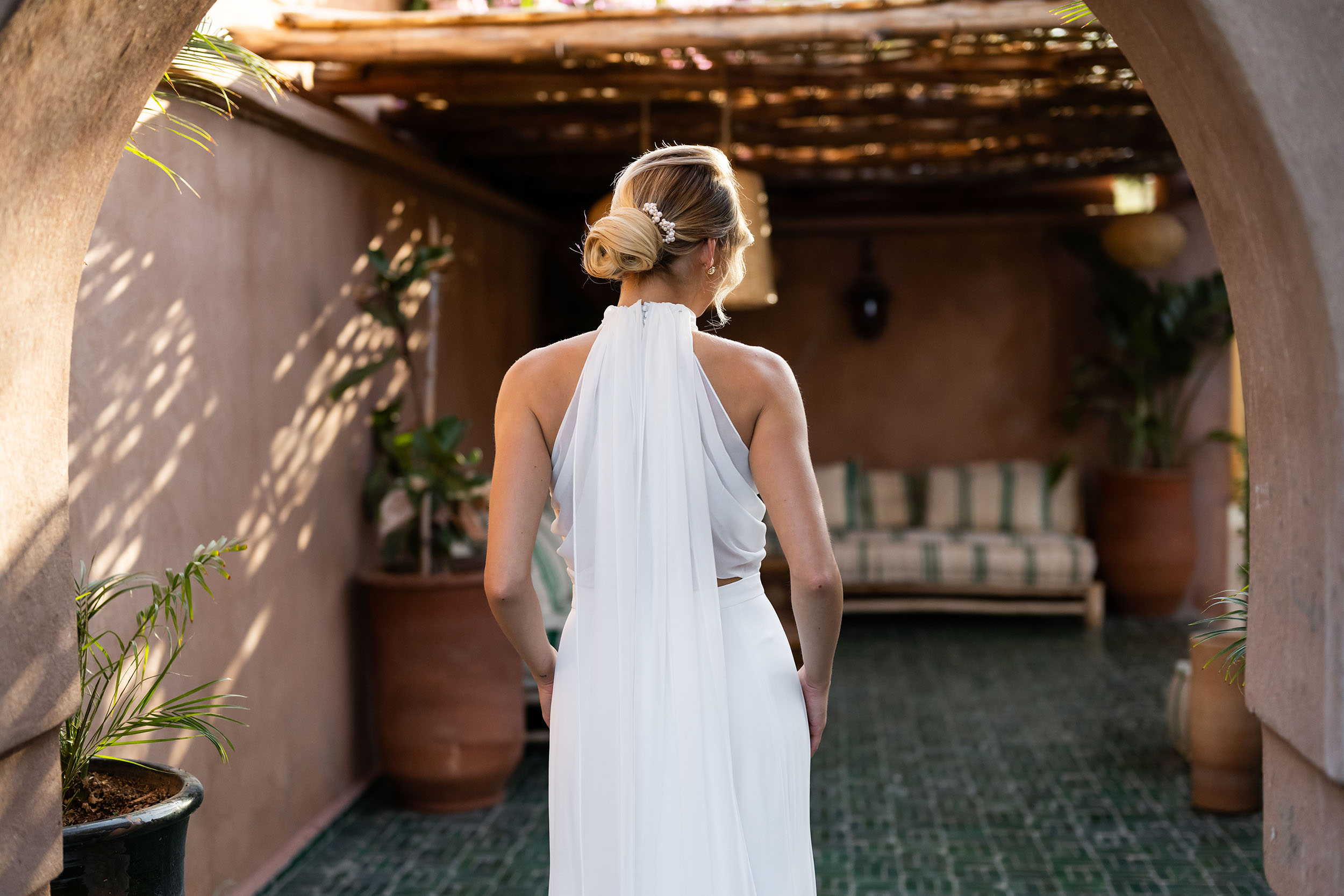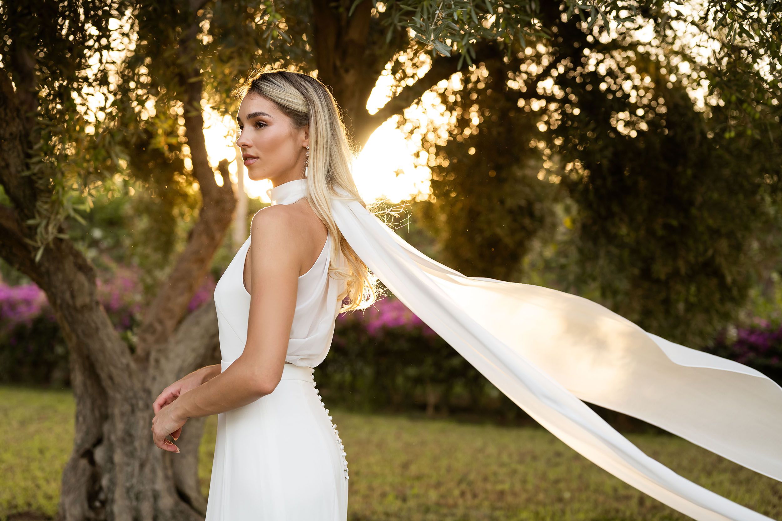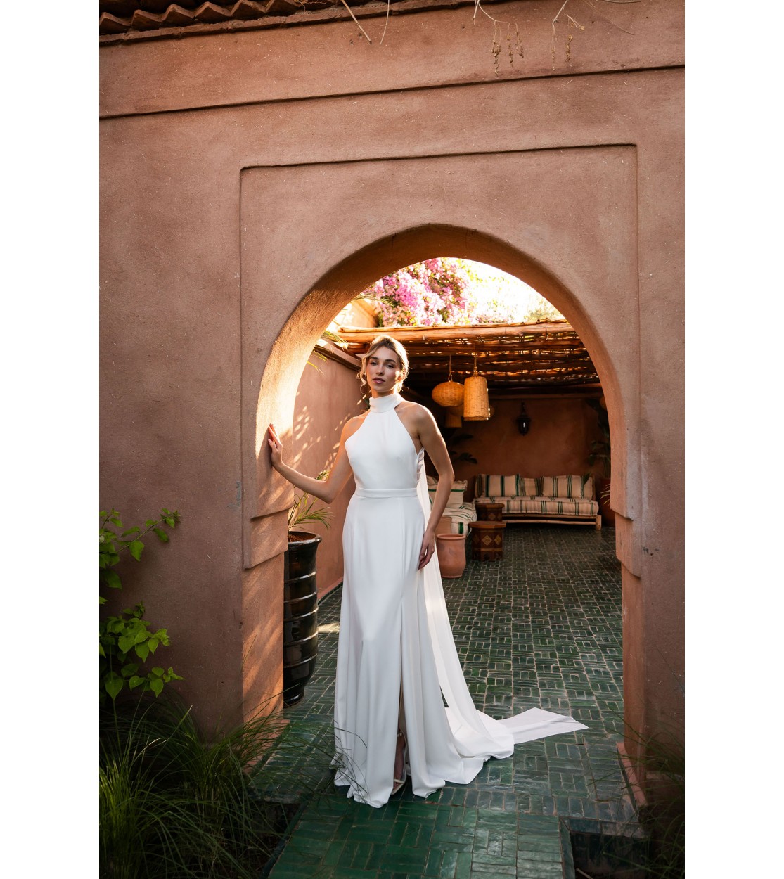 Les deux pans en mousseline sont de subtils accessoires imaginés pour sublimer la silhouette avec légèreté et raffinement.D’une longueur de 2m20 pour 35 cm de largeur, ils se fixent aisément grâce à des boutons-pressions discrets, fournis pour tout achat en ligne.Conçus pour s’adapter parfaitement aux modèles Victoria, Meghan et Maya, ces pans froncés créent un effet traîne vaporeux qui accompagne le mouvement et se déploie gracieusement au vent.Un détail élégant et poétique, signature du savoir-faire de la Maison Harpe.