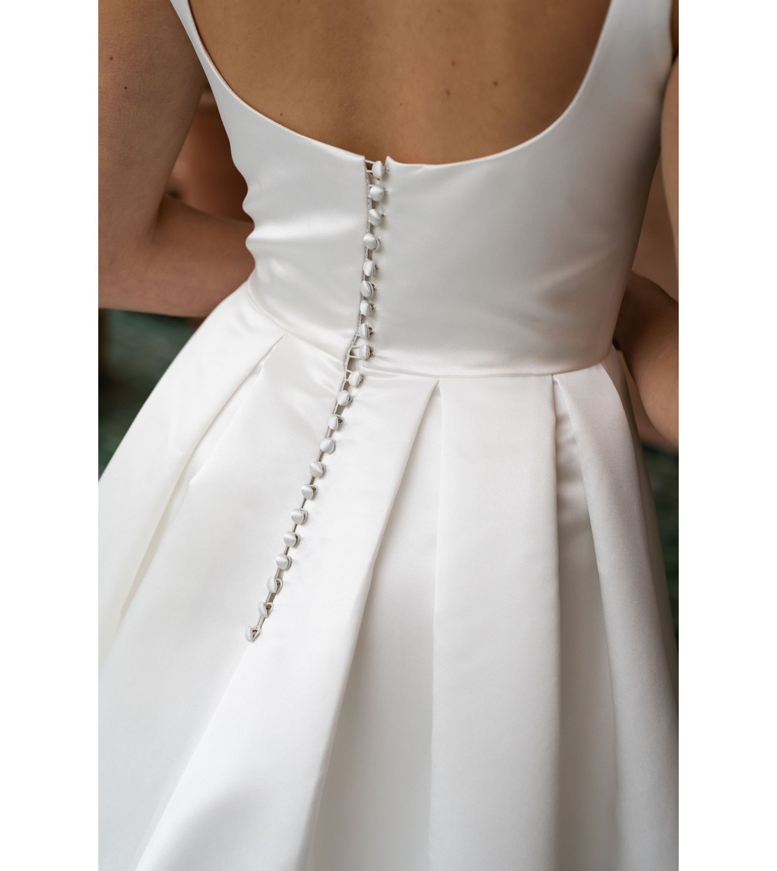 Cette création majestueuse séduit par son volume princier et son éclat raffiné. Réalisée en satin duchesse, elle incarne le mariage parfait entre modernité et classicisme.