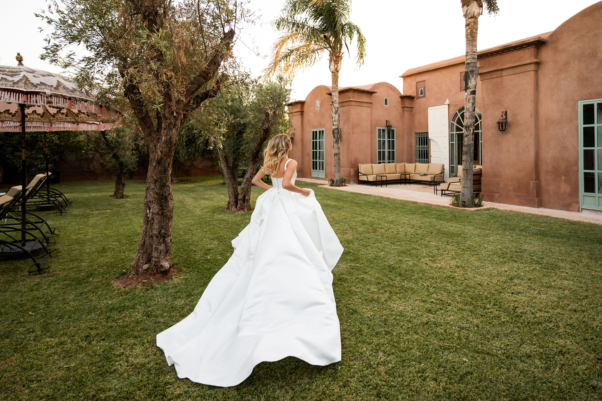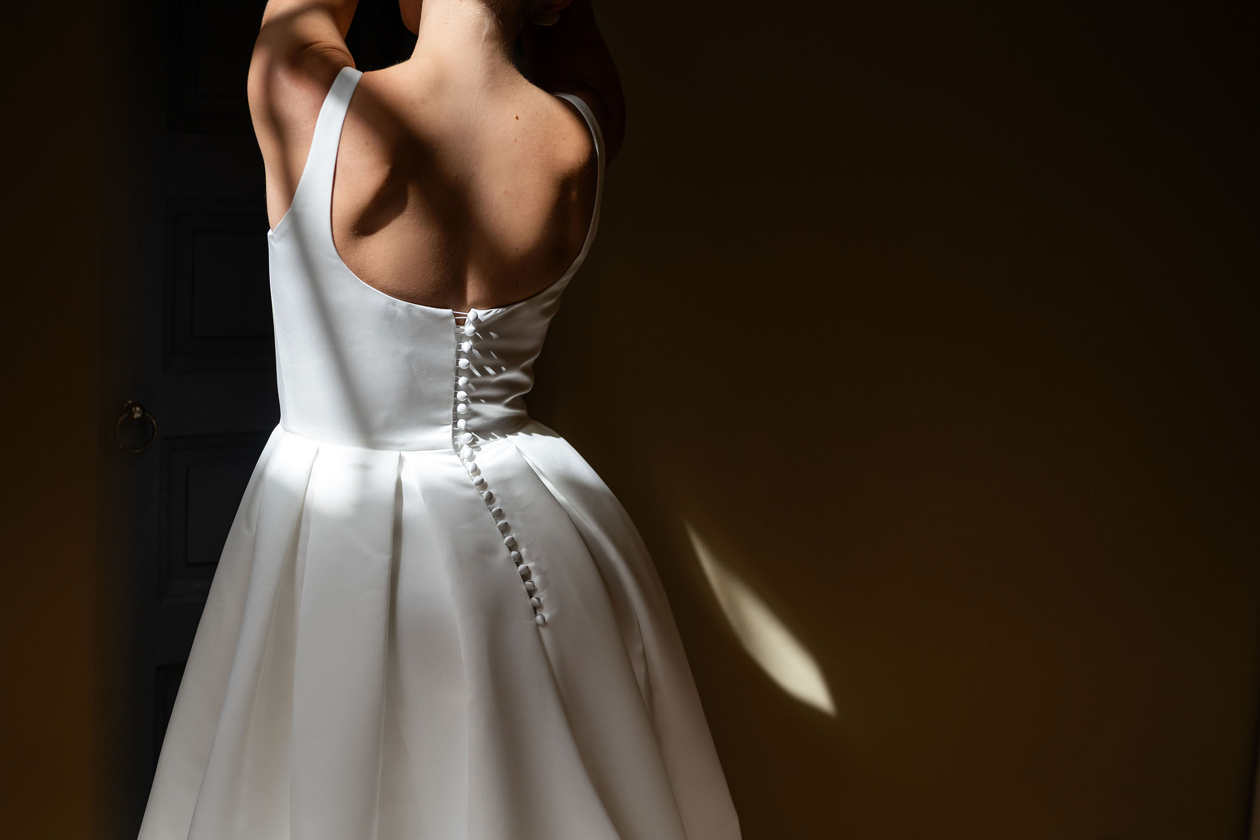 Une robe à l’esprit intemporel : moderne par sa coupe épurée et ses détails actuels, classique par son volume somptueux et son allure royale.